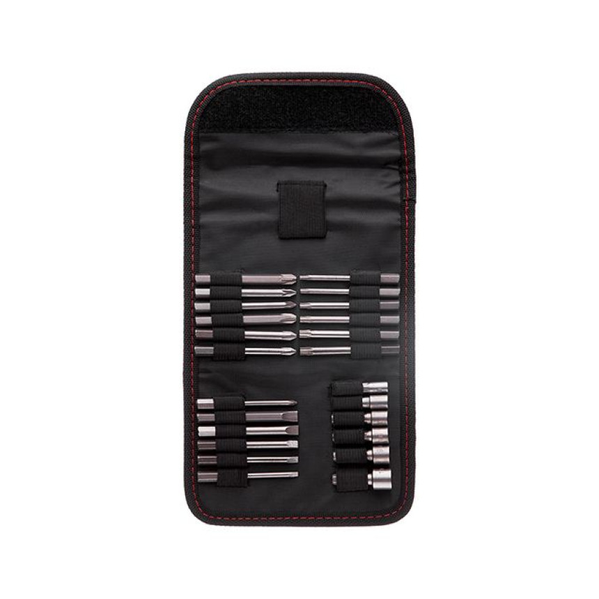 Інструменти завжди залишаються на своїх місцях та не випадають під час транспортування, передбачені еластичні фіксатори для кожного компонента набору.