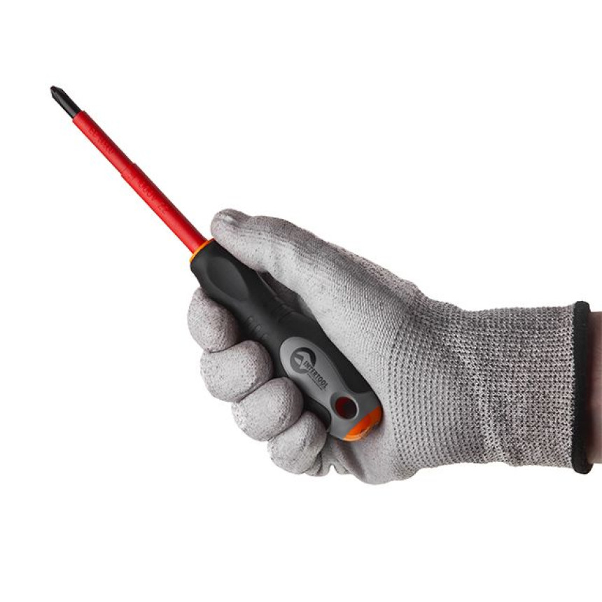 Електроізольована викрутка INTERTOOL призначена для безпечної та зручної роботи з електромережами, запобіжниками, перемикачами та різними приладами, під напругою до 1000 В.