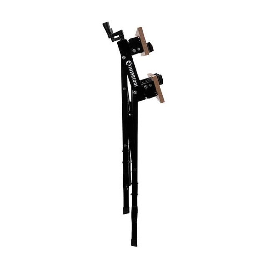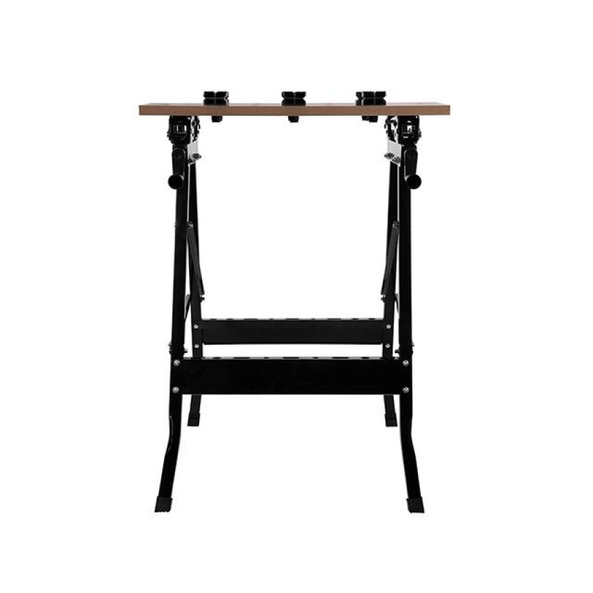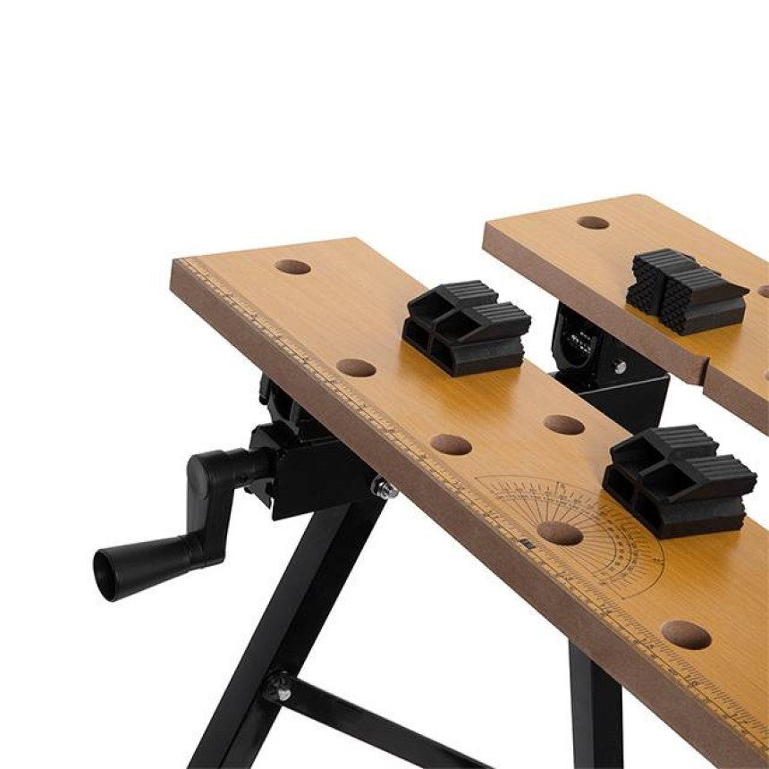 Виготовлений верстат з якісного сталевого профілю зі стільницею із ДСП, габаритами 605*240*790 мм, витримує рівномірне навантаження до 100 кг. За допомогою металевих розсувних планок верстат компактно складається для подальшого зберігання та транспортування.