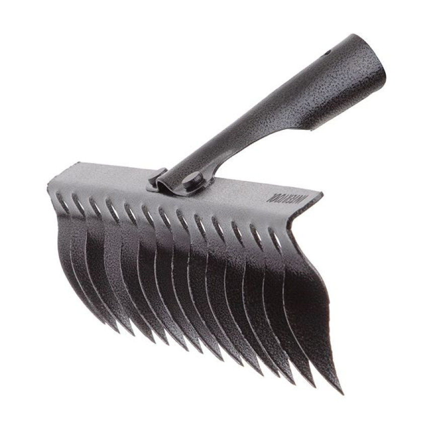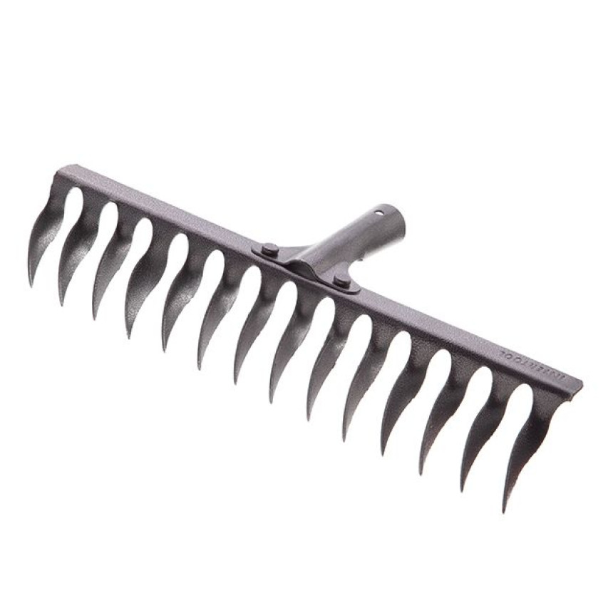 Граблі виготовлені з міцної інструментальної сталі, витримують великі навантаження на злам та відрізняються високою міцністю. Молоткове покриття запобігає налипанню в'язких матеріалів, а також забезпечує підвищену стійкість проти механічних пошкоджень та корозії.