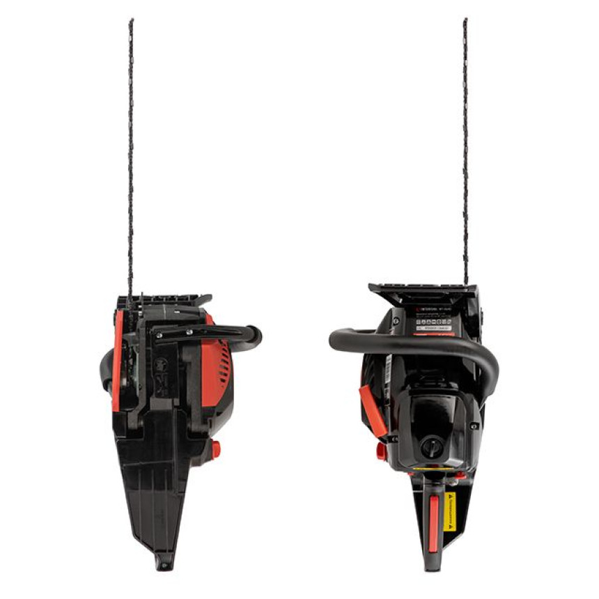 Широка передня ручка забезпечує кращу маневреність та зручне горизонтальне різання. М'яка накладка на ручці гарантує зручне захоплення та повний контроль над процесом. Простота в обслуговуванні обумовлена також автоматичним змащенням ланцюга.