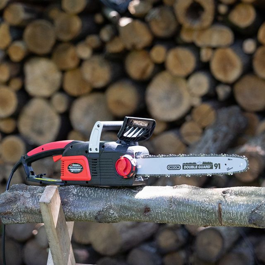 Двигун потужністю 2400 Вт розвиває швидкість ланцюга 14 м/с, що забезпечує швидке розпилювання деревини будь-якого виду: від мокрого дерева до деревно-стружкових плит. Шина та пиляльний ланцюг Oregon з кроком 3/8” має високі характеристики міцності та довго тримає заточування.