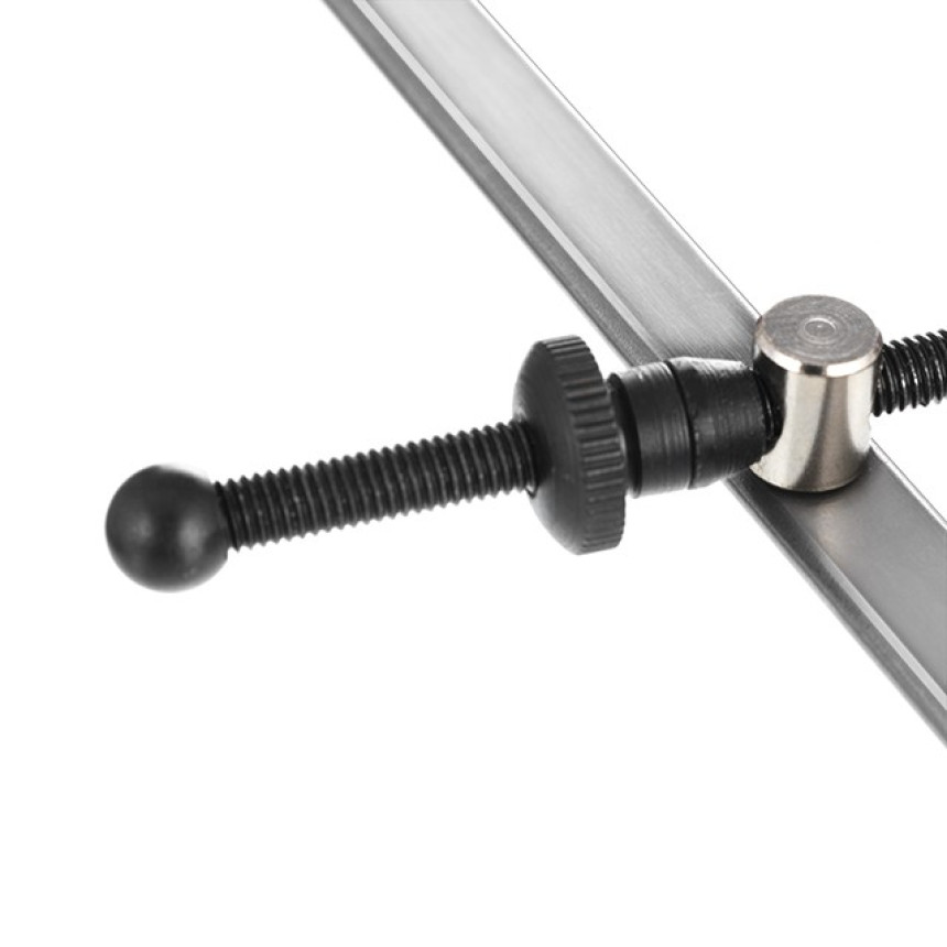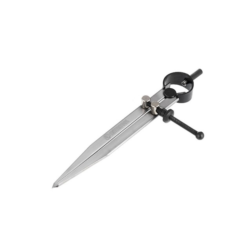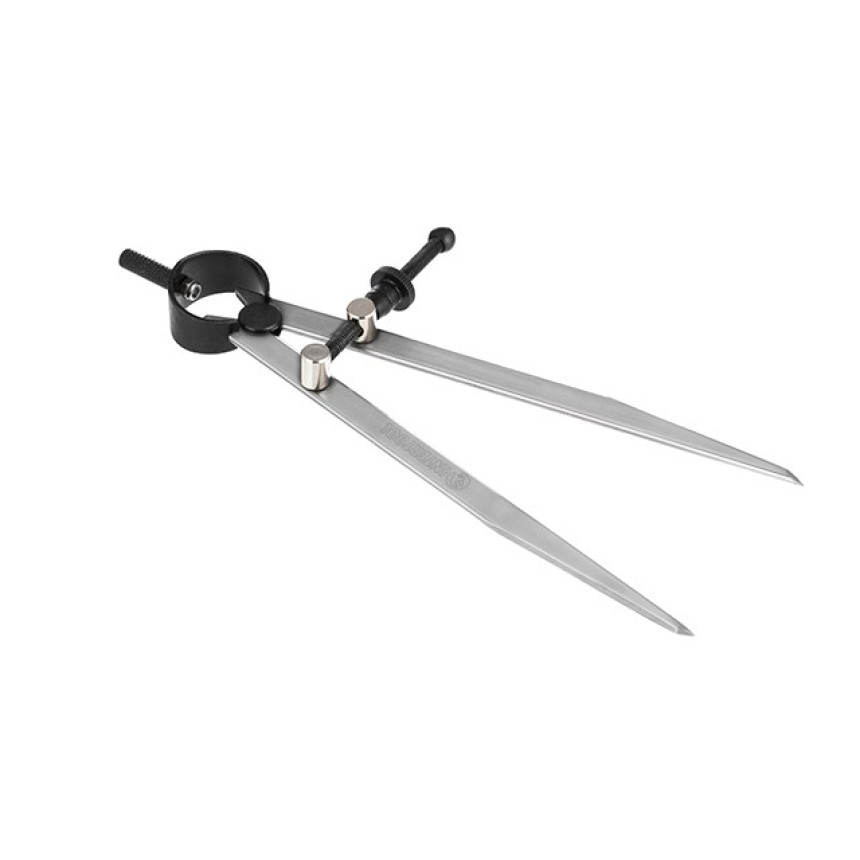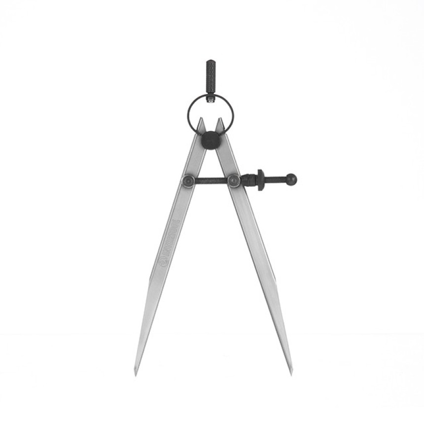 Виготовлений циркуль з міцної вуглецевої сталі, розмічальні кінці загострені та загартовані. Має в конструкції гвинтовий фіксатор із пружиною для максимально точного калібрування.