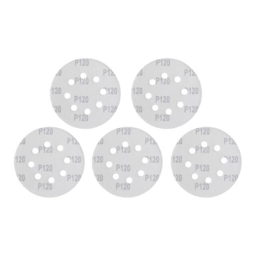 Круг наждаковий самоклеючий 125 мм з отворами , папір клас С, густина 140 г/м2, К120, уп. 5 од. INTERTOOL BT-0587