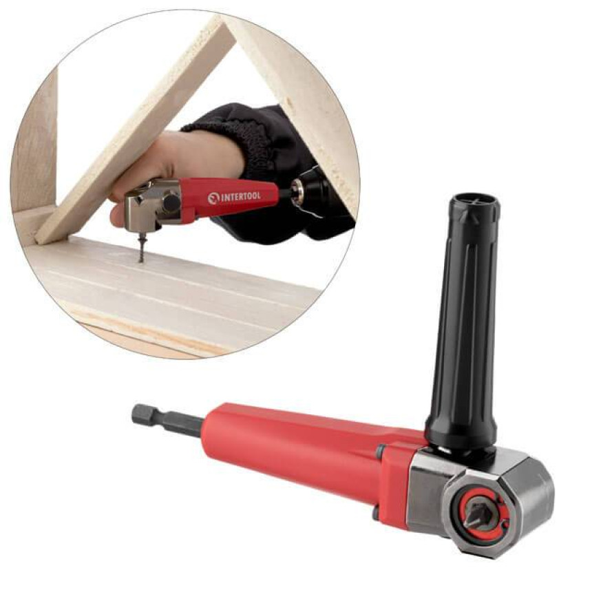 Насадка INTERTOOL VT-0115 розширює можливості вашого інструменту та дозволяє легко закручувати/відкручувати шурупи або просвердлювати отвори у важкодоступних місцях. Редуктор встановлений під кутом 90ᴼ.