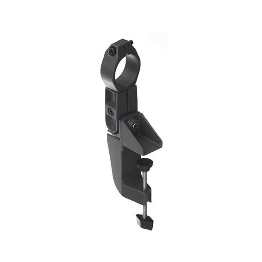 Тримач має два ступені свободи і дозволяє повертати інструмент як у горизонтальній, так і у вертикальній площині на 90 градусів. Це дозволяє виконати будь-які стаціонарні роботи, наприклад, робити велику кількість дуже точних отворів, шліфувати, пиляти рейки тощо. Тримач дуже легко монтується на будь-яку поверхню, розмір посадкового отвору для столу - 48 мм.