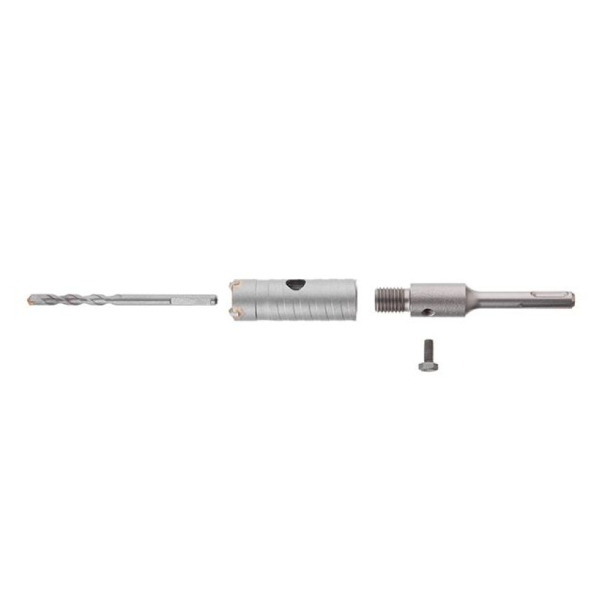Коронка по бетону в зборі INTERTOOL призначена для свердління отворів у міцних абразивних матеріалах, таких як цегла, бетон, пінобетон, камінь тощо. Використовуються разом із перфораторами із системою кріплення оснащення SDS-plus.