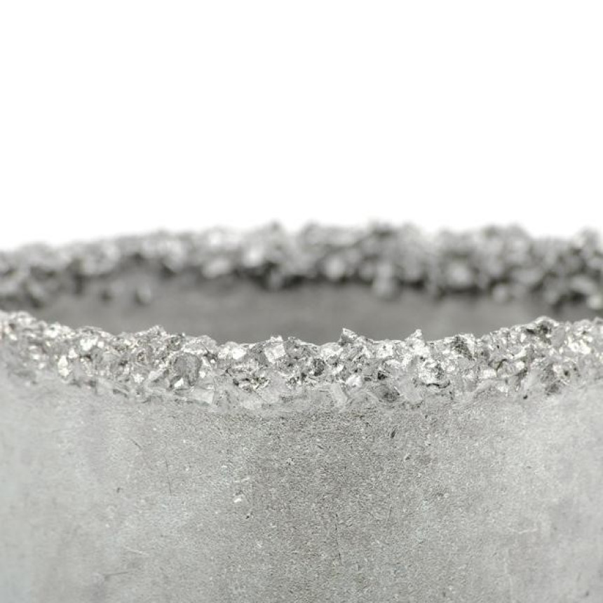 Корончасті свердла (фрези) виготовлені з високоякісної інструментальної сталі, стійко переносять фізичні навантаження. Ріжуча частина рівномірно вкрита карбід-вольфрамової крихтою, яка забезпечує комфортне свердління без сколів та тріщин. Направляюче свердло не дає коронці йти в сторону та дозволяє робити рівні отвори. Глибина свердління 64 мм.