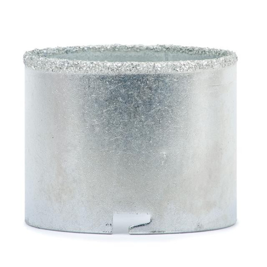 Корончаті свердла (фрези) виготовлені з високоякісної інструментальної сталі, стійко переносять фізичні навантаження. Ріжуча частина рівномірно вкрита карбід-вольфрамової крихтою, яка забезпечує комфортне свердління без сколів та тріщин. Направляюче свердло не дає коронці йти в сторону та дозволяє робити рівні отвори. Глибина свердління 64 мм.