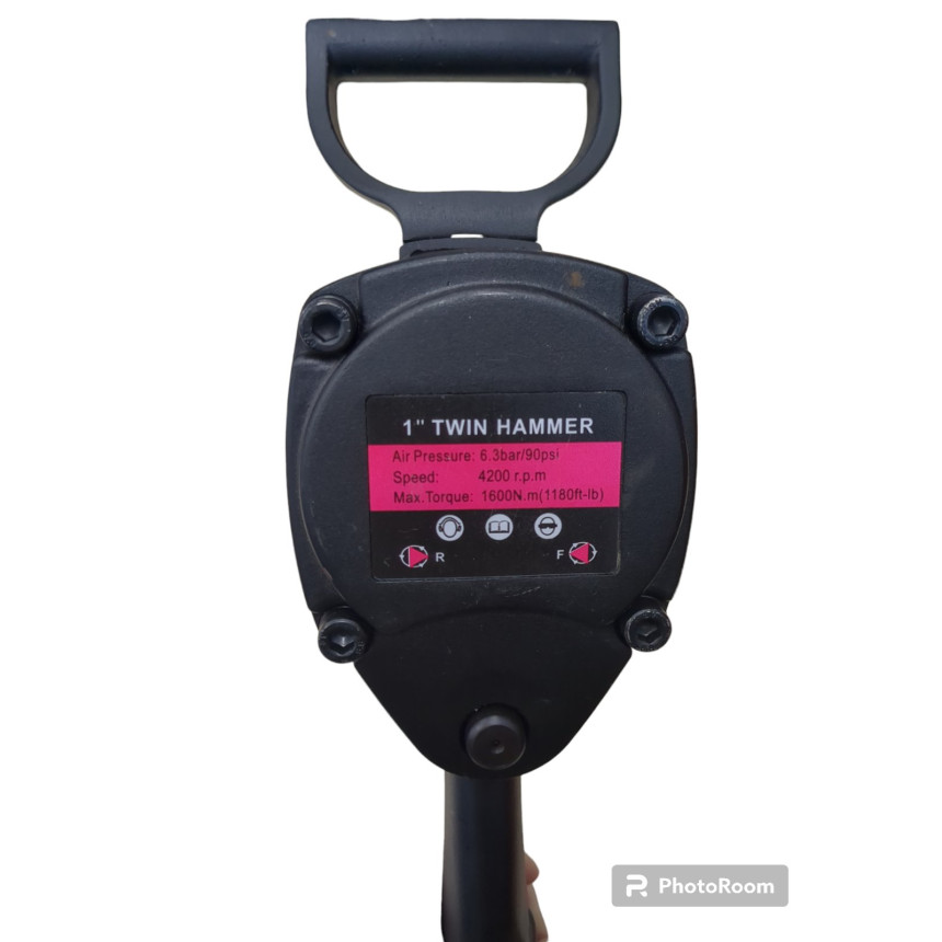 Тип ударного механизма: Pinless Hammer Легкий вес и высокий крутящий момент Спецификация: Квадратный хвостовик: 1 " Максимальный диаметр головки для гайки : 1-1/2 " 38 мм Скорость холостого хода: 4500 оборотов в минуту Расход воздуха: 23 cfm Максимальный крутящий момент: 1400 ft-фунтов 1898 Nm Диаметр воздушного шланга ID.3/8 -9.5 мм Вес нетто: 7 kgs