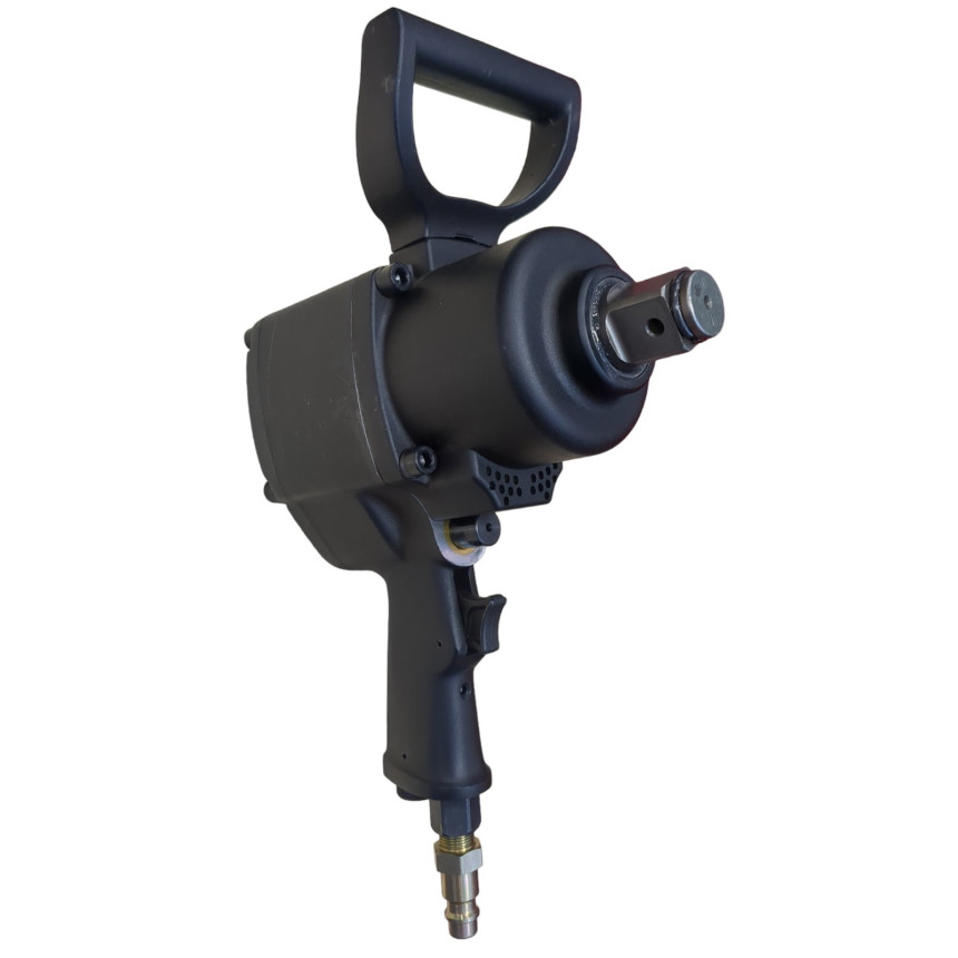 Тип ударного механизма: Pinless Hammer Легкий вес и высокий крутящий момент Спецификация: Квадратный хвостовик: 1 " Максимальный диаметр головки для гайки : 1-1/2 " 38 мм Скорость холостого хода: 4500 оборотов в минуту Расход воздуха: 23 cfm Максимальный крутящий момент: 1400 ft-фунтов 1898 Nm Диаметр воздушного шланга ID.3/8 -9.5 мм Вес нетто: 7 kgs