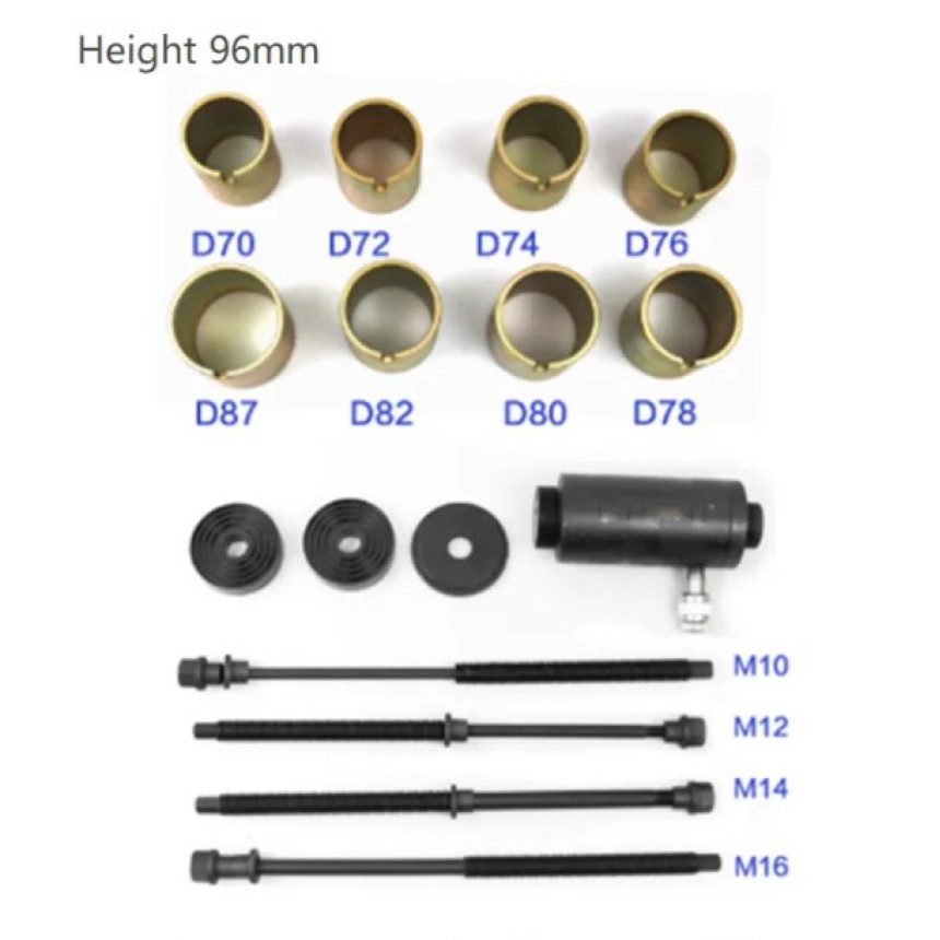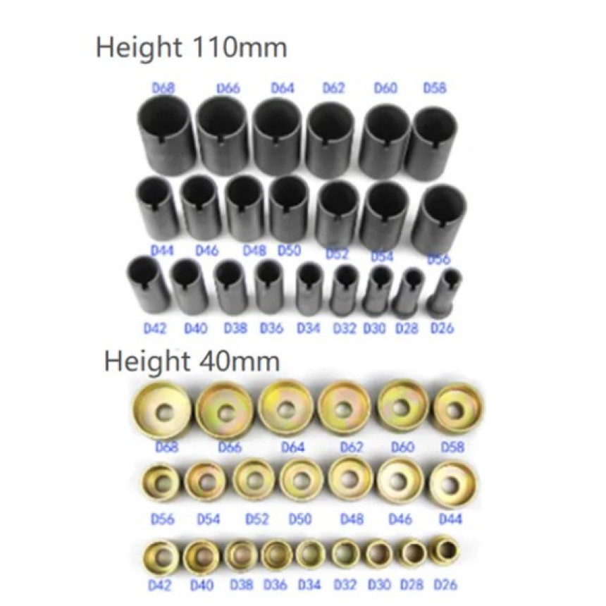 Универсальный набор используется для снятия и установки сайлентблоков и резиновых втулок. Общее количество предметов в наборе: 62. Применение