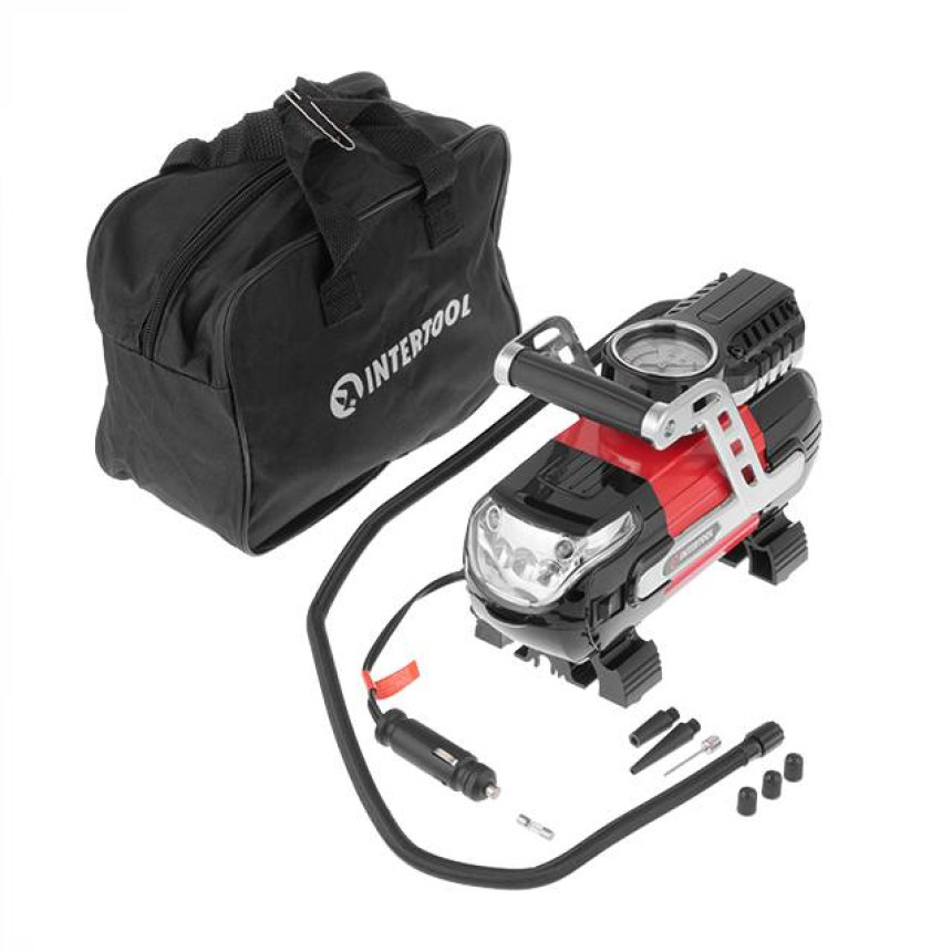 Оптимальний показник тиску в шинах – обов'язкова умова безпеки на дорозі та для довговічної експлуатації шин. Автомобільний компресор INTERTOOL AC-0002 здатний накачати за лічені хвилини колесо вашого авто до необхідного тиску. Оскільки правильний показник тиску допомагає подовжити термін служби шин, зменшує витрату пального та загалом покращує їзду.