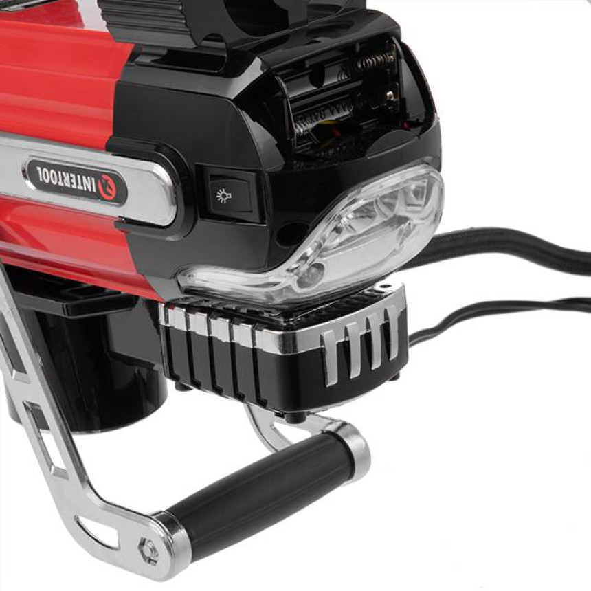 Вбудований LED-ліхтар допоможе зручно накачати колесо навіть у темну пору доби, працює як від прикурювача, так і від батарейок ААА типу.