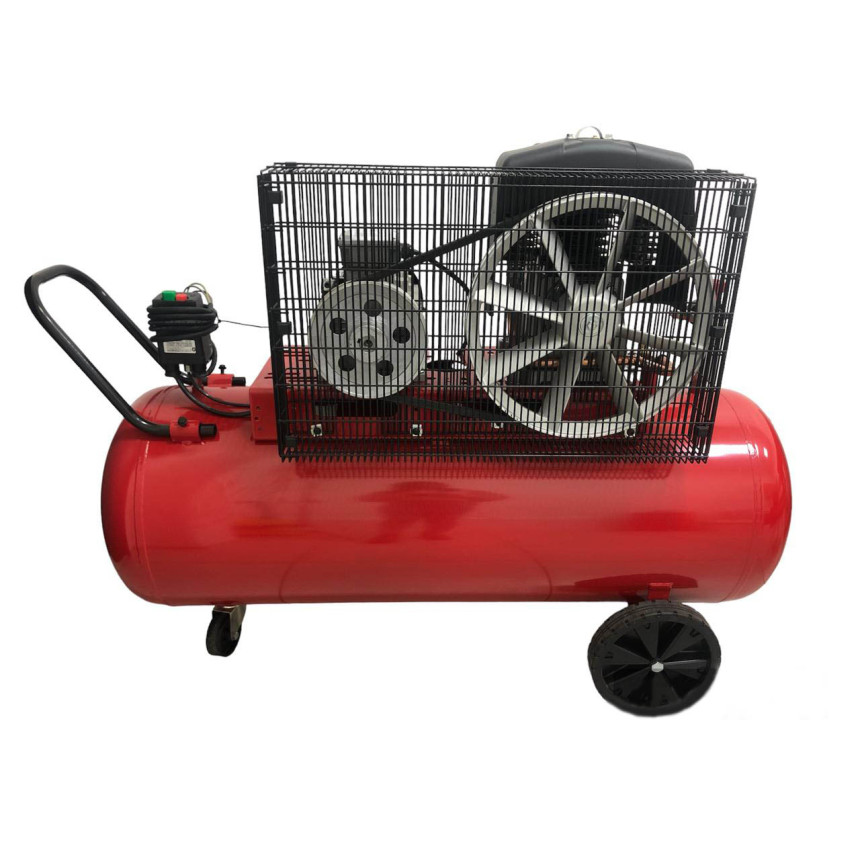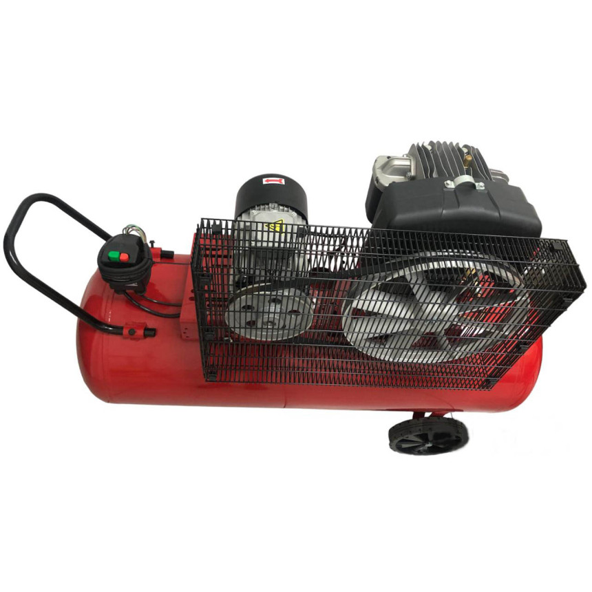 Компресор працює від трифазної мережі 380 В та оснащений високоефективним насосним агрегатом потужністю 5,5 к.с. Чавунні циліндри з великими колекторами забезпечують покращене охолодження, а міцний металевий кожух захищає ремінь та інші рухомі частини. Завдяки ресиверу об'ємом 200 літрів пристрій підтримує стабільний тиск навіть при високих навантаженнях.