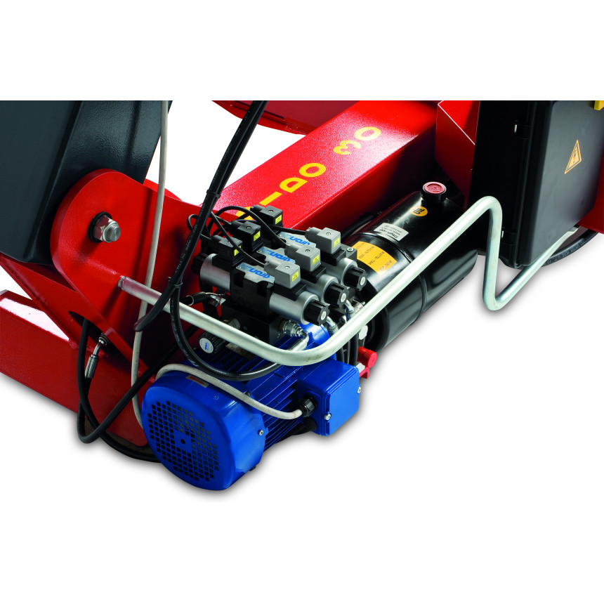 Гидравлическое распределение оборудовано клапаном, регулирующим рабочее давление патрона. Регулирование давление позволяет обрабатывать все типы алюминия, сплавов и любые слабые или тонкие диски Электрогидравлический грузовой шиномонтажный станок M Основные особенности: