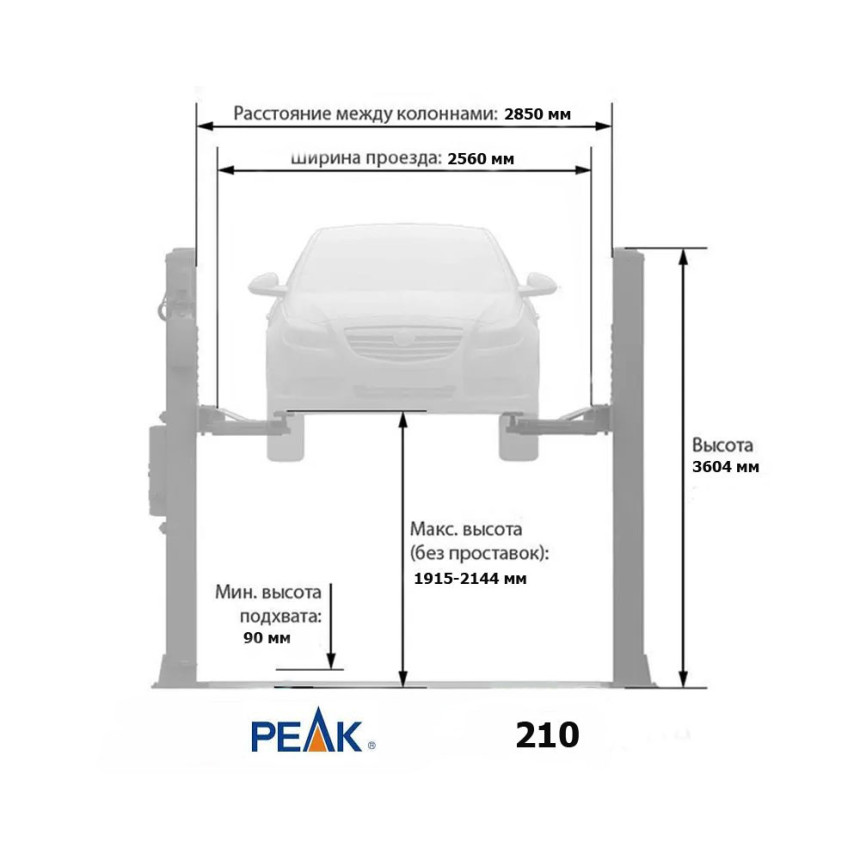 Профессиональный автомобильный электрогидравлический двухстоечный подъемник Peak 210 с нижней синхронизацией, позволит максимально оптимизировать проведение ремонтных работ и обслуживание автмобилей. Автоподъемник предназначен для проведения различных работ по ремонту и обслуживанию легковых автомобилей, внедорожников, микроавтобусов и небольших грузовиков в условиях автосервиса, СТО.