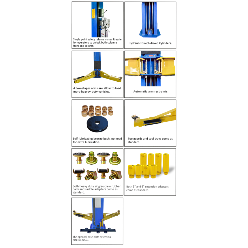 PEAK 218C – це потужний двостійковий витяг, спеціально розроблений для роботи з важкими транспортними засобами. Посилена конструкція та довгі каретки забезпечують стабільність та надійність, а регульовані налаштування висоти роблять цей підйомник універсальним рішенням для автосервісів.