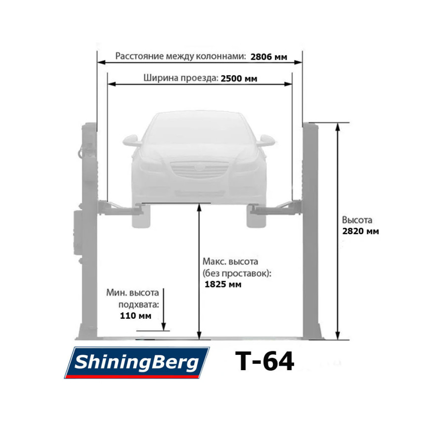 Электрогидравлический 2-х стоечный подъемник г/п 4 т, 220В Shiningberg используется на станциях технического обслуживания для удобного осмотра и ремонта легковых автомобилей, легких грузовиков, пикапов и внедорожников. Механические стопоры исключают вероятность падения груза. Благодаря нижней синхронизации возможна установка оборудования в невысоких помещениях, а также подъем высоких транспортных средств. Порошковое лакокрасочное покрытие устойчиво к влиянию коррозии и образованию сколов в течение всего срока службы.