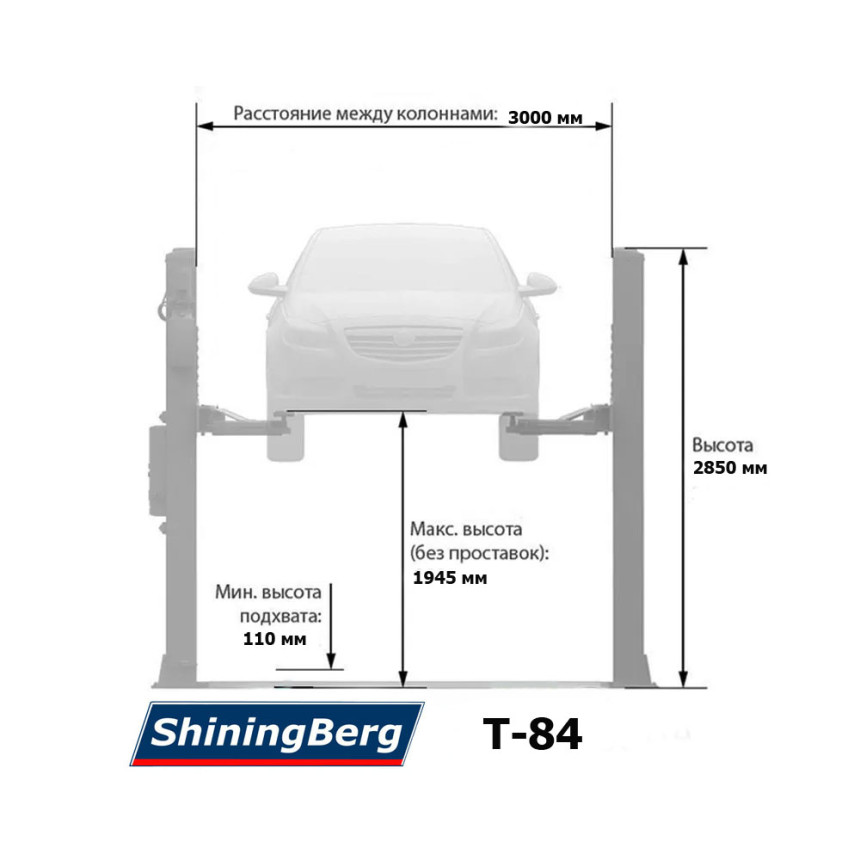 2-стоечный электрогидравлический подъемник с нижний синхронизацией Shiningberg T50 обеспечивает равномерный подъем автомобилей на высоту 1.9 м для удобства доступа к рабочим узлам. Модель успешно используется на станциях технического обслуживания, а также в отделах ПТО крупных автопарков.