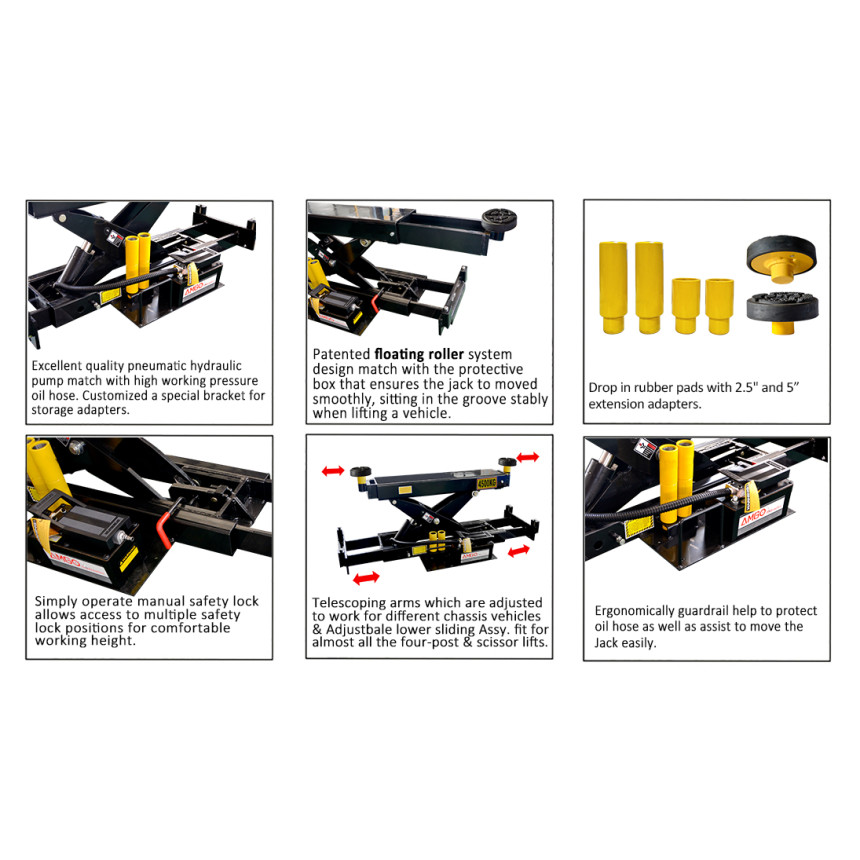 RJ-10A – це потужний домкрат для шиномонтажних робіт, що ідеально підходить для використання з чотиристійковим та ножичним підйомниками вантажопідйомністю понад 8 тонн.